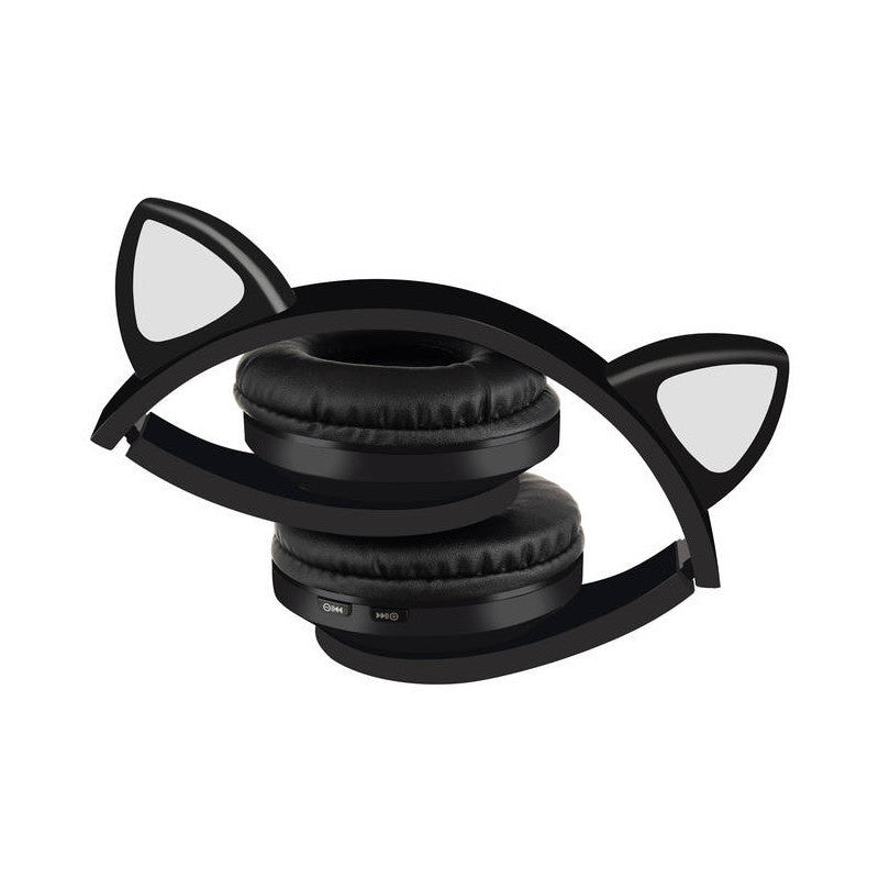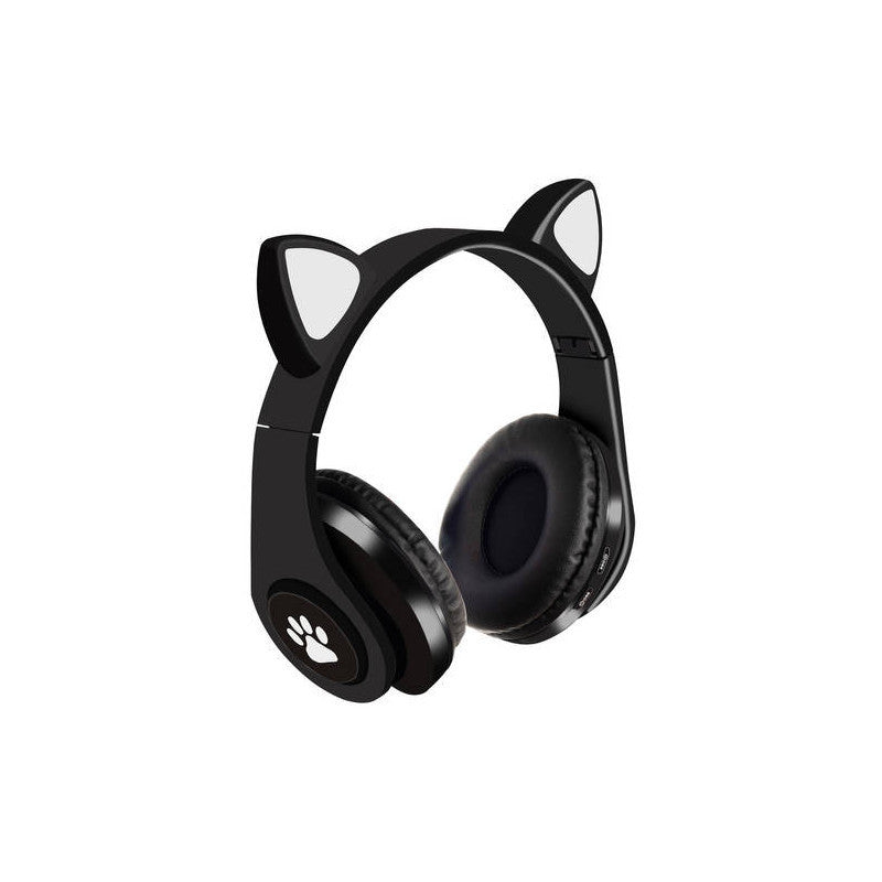 Cicafüles vezeték nélküli fejhallgató - fekete
